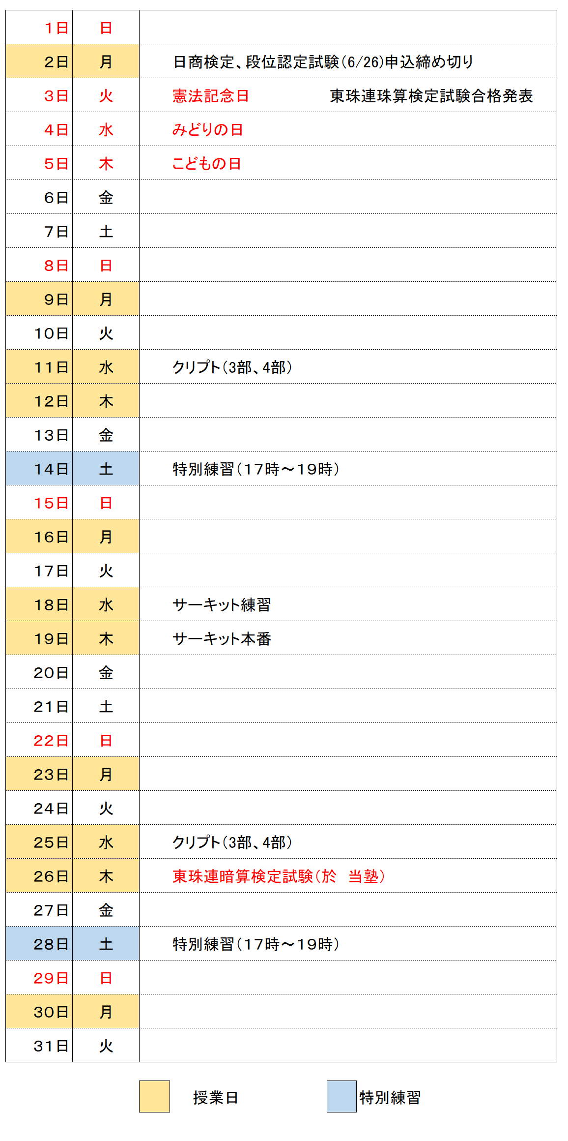 2022年5月の予定表 Let’s Try Soroban & Anzan! 日本珠算連盟東京珠算教育連盟 認定教場 共立速算研究塾そろばん・暗算・フラッシュ暗算教室 住 所東京都江戸川区東小岩4丁目13-7(東小岩小学校そば) 最寄駅JR小岩駅(徒歩10分) そろばん体験学習お申し込み