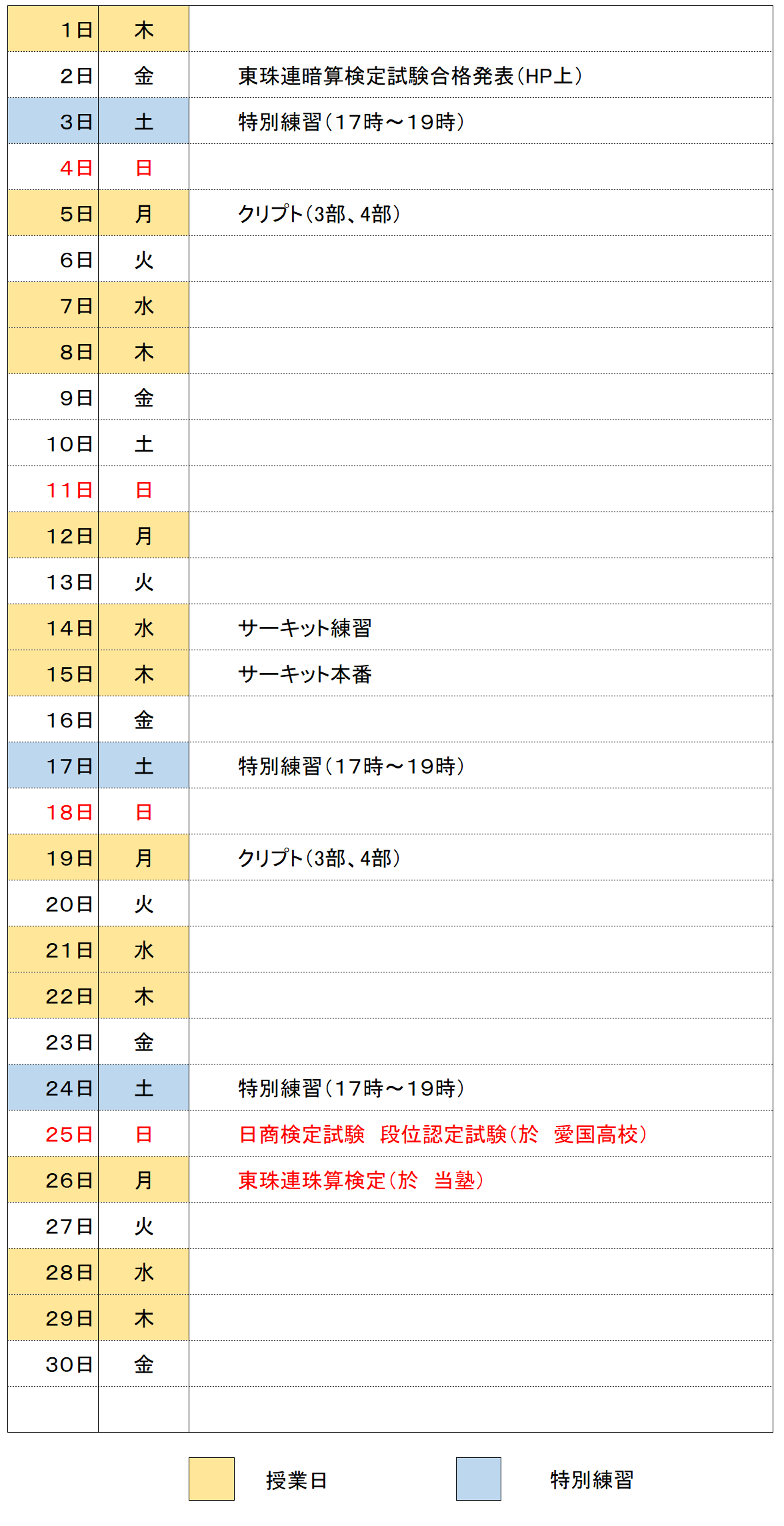 2023年6月の予定表
