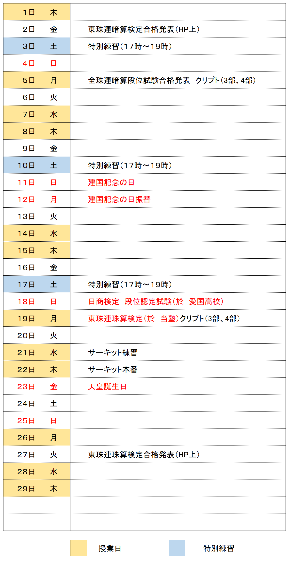 2024年2月の予定表