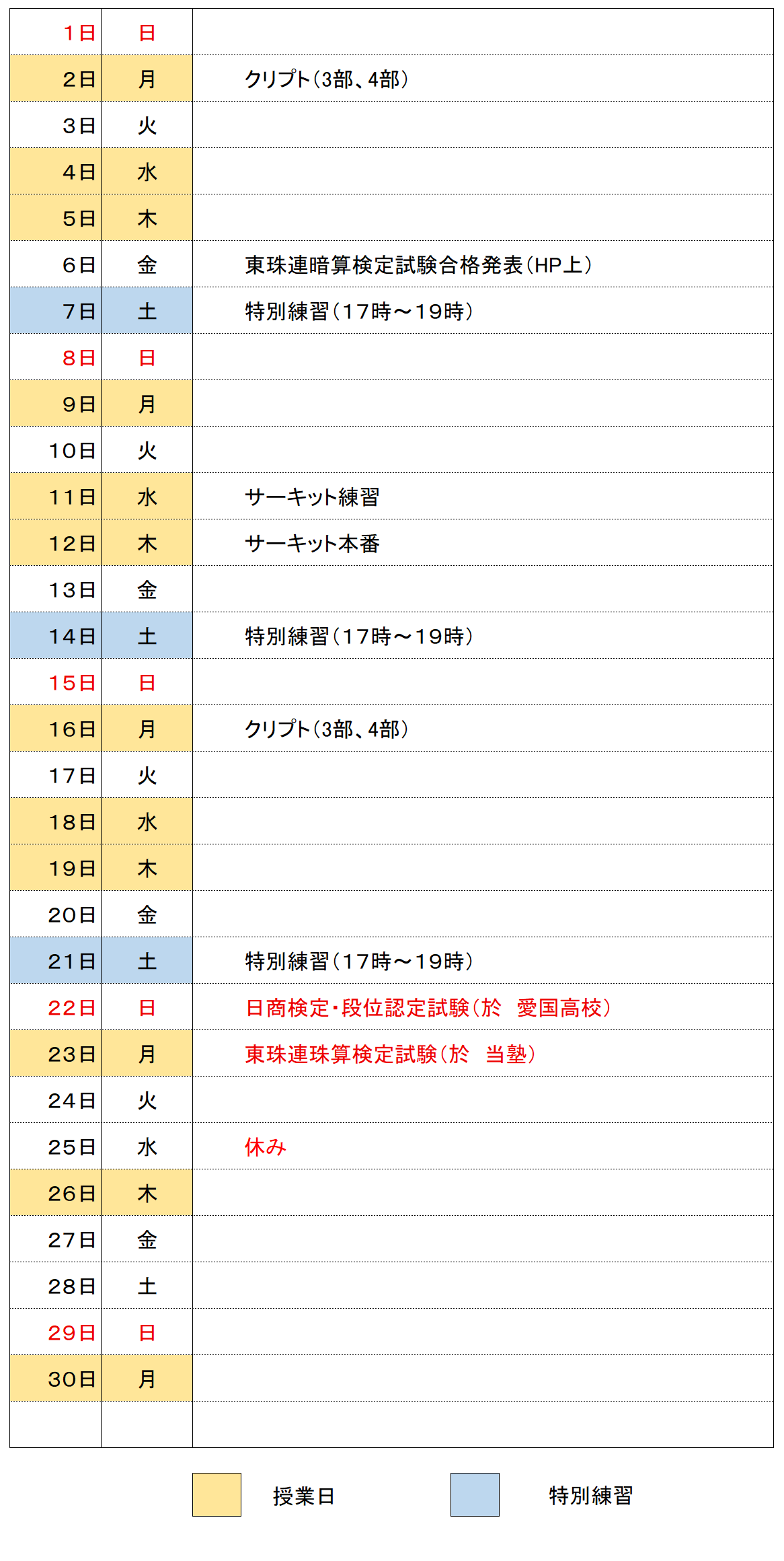 2025年6月の予定表